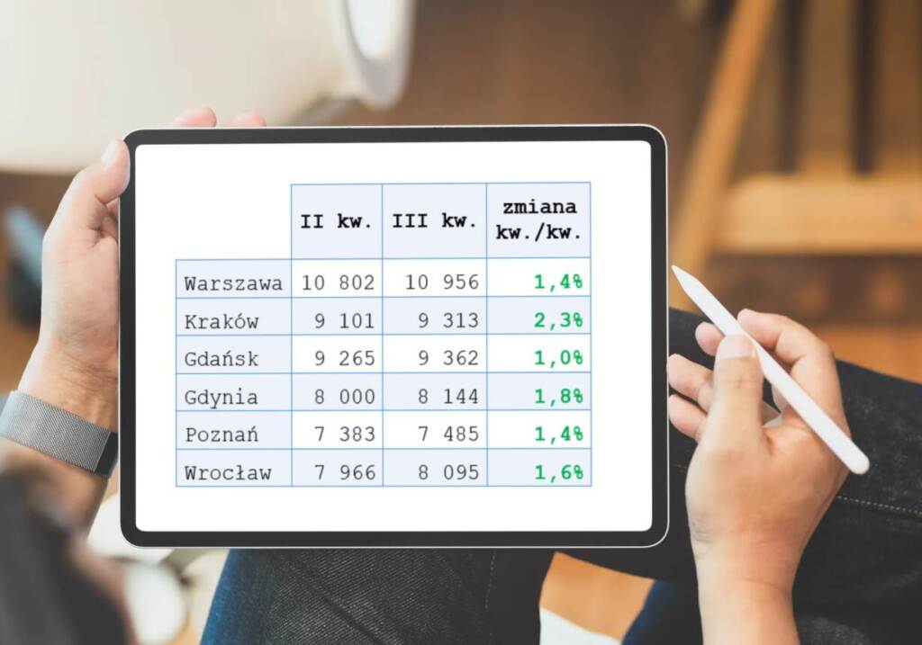 W samym wrześniu przeciętny poziom cen oferowanych mieszkań w stolicy przekroczył poziom 11 tys. zł/m2. Pozostałe większe zmiany cen miały miejsce jedynie w Gdańsku, Gdyni i Krakowie, gdzie wzrost ceny wynosił od 1 do 1,2% w porównaniu do sierpnia. W Poznaniu i Wrocławiu ostatni miesiąc