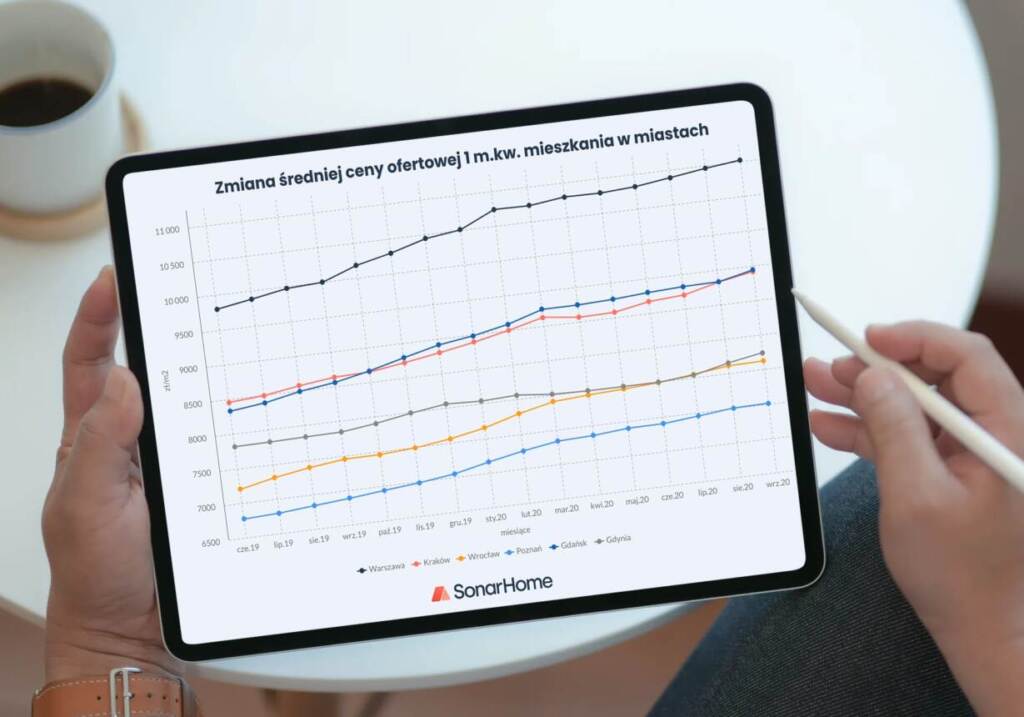 SonarHome to firma, która na rynku nieruchomości działa od 2017 roku. Jako pierwsza w Polsce wprowadziła usługę iBuyingu, która umożliwia szybką i bezpieczną sprzedaż mieszkania za gotówkę. Usługa ta jest szczególnie popularna w Stanach Zjednoczonych. Zakup mieszkania następuje, w oparciu o cenę rynkową, generowaną przy wykorzystaniu zaawansowanych algorytmów opartych o machine learning. Na stronie SonarHome udostępniamy darmowe narzędzie do wyceny, każda wycena ma poparcie w danych dotyczących faktycznych cen ofertowych i transakcyjnych mieszkań w wybranej okolicy. SonarHome tworzy także mapę cen mieszkań, która pozwala sprawdzić, jak kształtują się ceny nieruchomości na bazie aktualnych ofert sprzedaży na poziomie miasta, dzielnicy, osiedla i konkretnej ulicy. Naszym celem jest dostarczenie wiedzy na temat wtórnego rynku nieruchomości szerokiej rzeszy odbiorców. Informacja, którą Państwo czytają powstała na podstawie danych, które zbieramy i analizujemy każdego dnia. www.sonarhome.pl Poprzednie publikacje dostępne tutaj: https://sonarhome.pl/raporty
