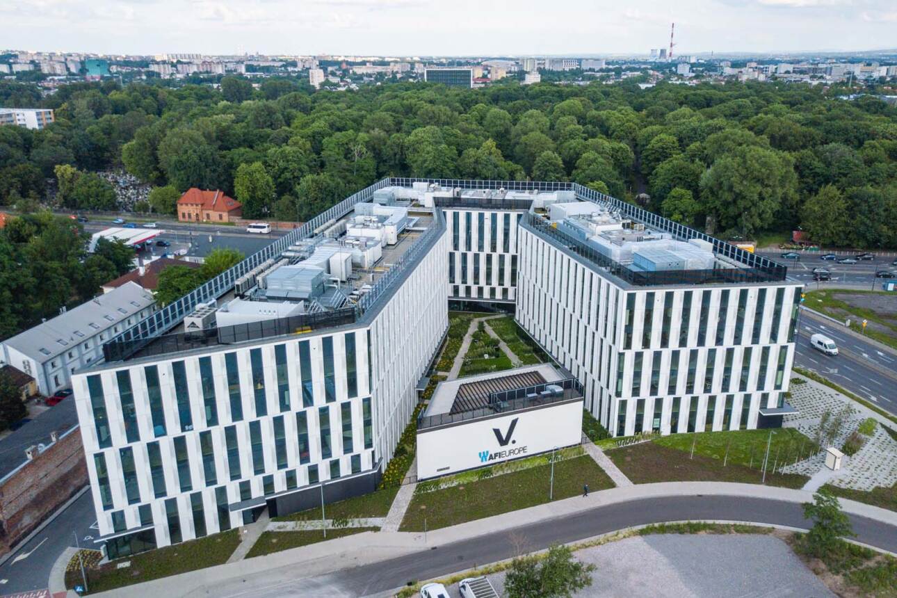 V.Offices jest atrakcyjnym miejscem pracy, oferującym ponad 21 400 m kw. powierzchni biurowej. To świetnie zlokalizowany punkt na mapie Krakowa pod względem dostępu do komunikacji miejskiej. Ponadto biurowiec zorientowany jest na ekologię, oferując możliwość ładowania samochodów elektrycznych oraz stacje rowerowe, będące odpowiedzią na potrzeby pracowników wybierających transport nieszkodliwy dla środowiska. V.Offices na etapie projektowania został wyróżniony certyfikatem „International New Construction”.